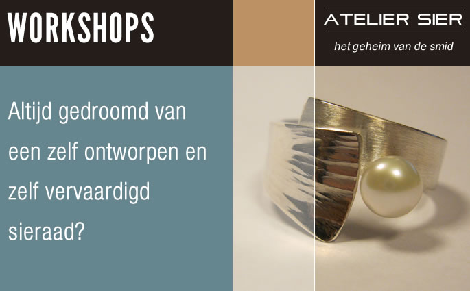 Tijdens deze workshop vervaardigt u zelf, onder begeleiding van Daniëlle, een zilveren ring, hanger of oorbellen naar eigen ontwerp of voorbeeld.